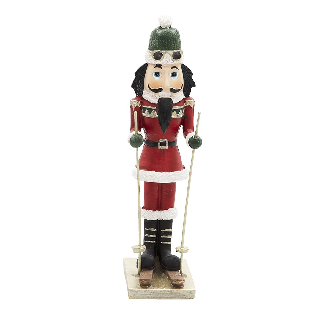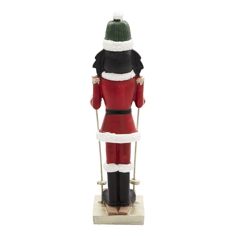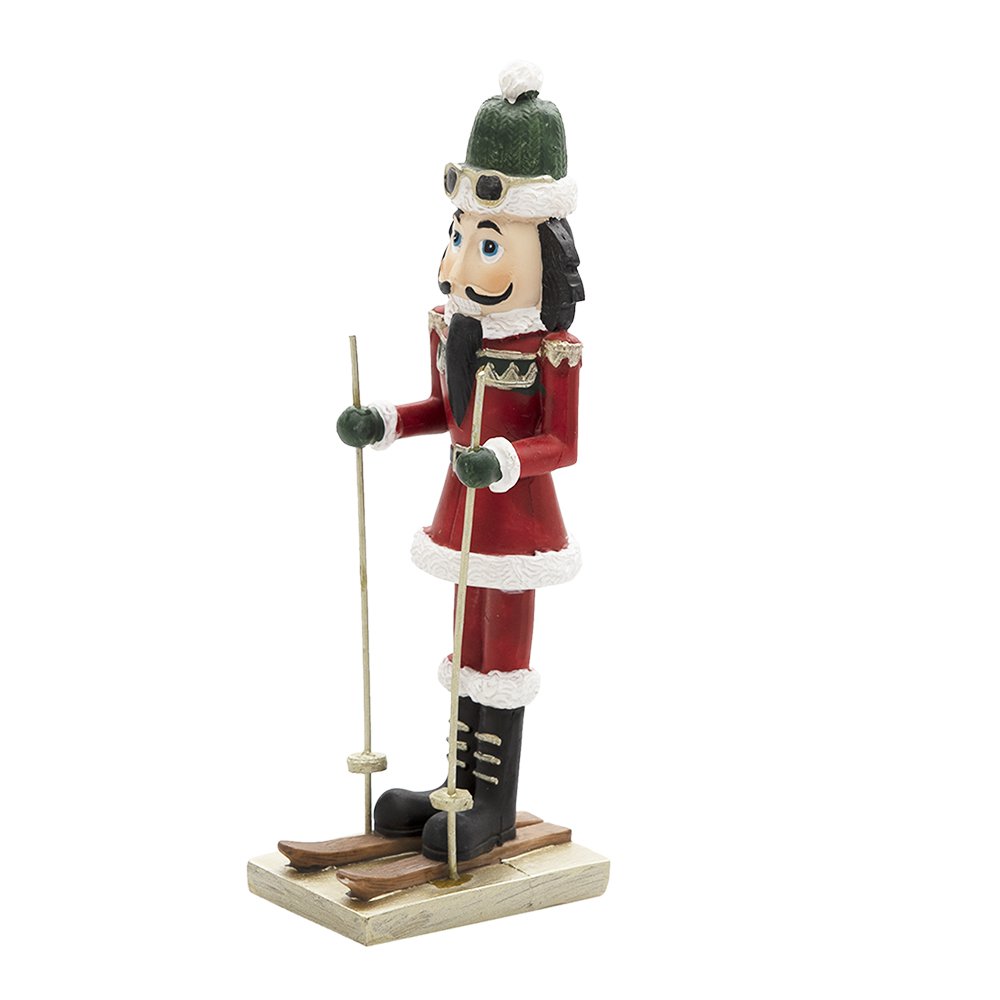 Image Nutcracker 17 cm Décoration de Noël en plastique blanc rouge. Rouge décoratif avec statue blanche d'un casse-noisette sur skis.