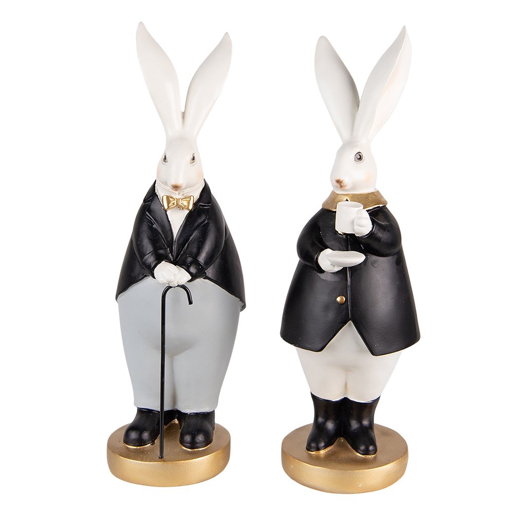 Black Grey Sculpture, Polyresin (2) 13x11x34 / 13x11x34 cm. Beautiful decorative set of 2 black and grey rabbit statues, in a classic country style, from the Clayre & Eef brand. Also ideal for Easter decoration.