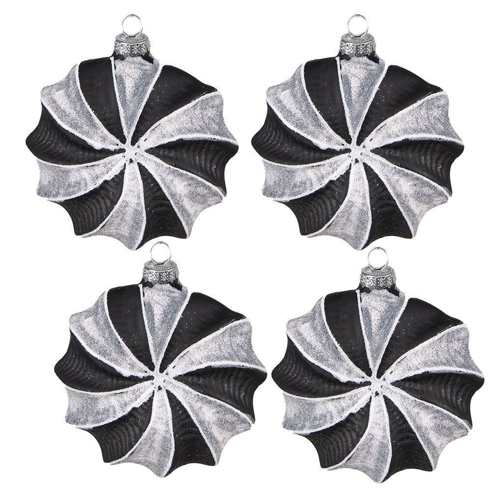 Bauble de Noël Ensemble de 4 10 cm Décoration de Noël en verre gris noir. Ensemble de quatre balles de Noël décoratives, de luxe, noires et gris, dans un style classique. Dimensions 10x3x10 cm.
