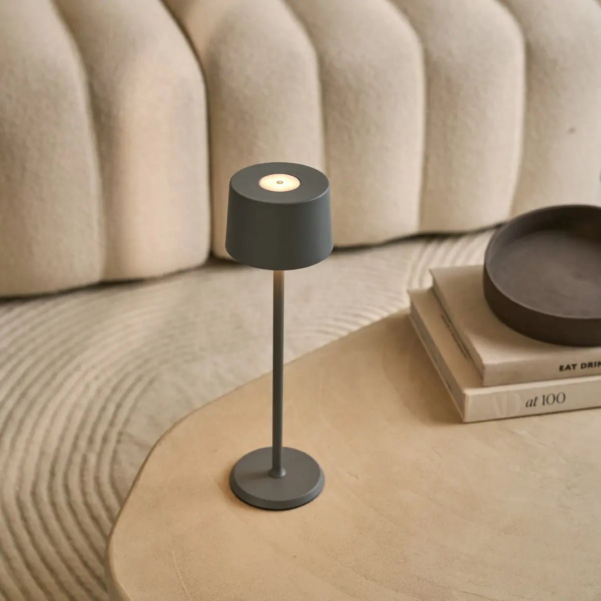 Lampe de table en Métal gris - rechargeable et sans fil