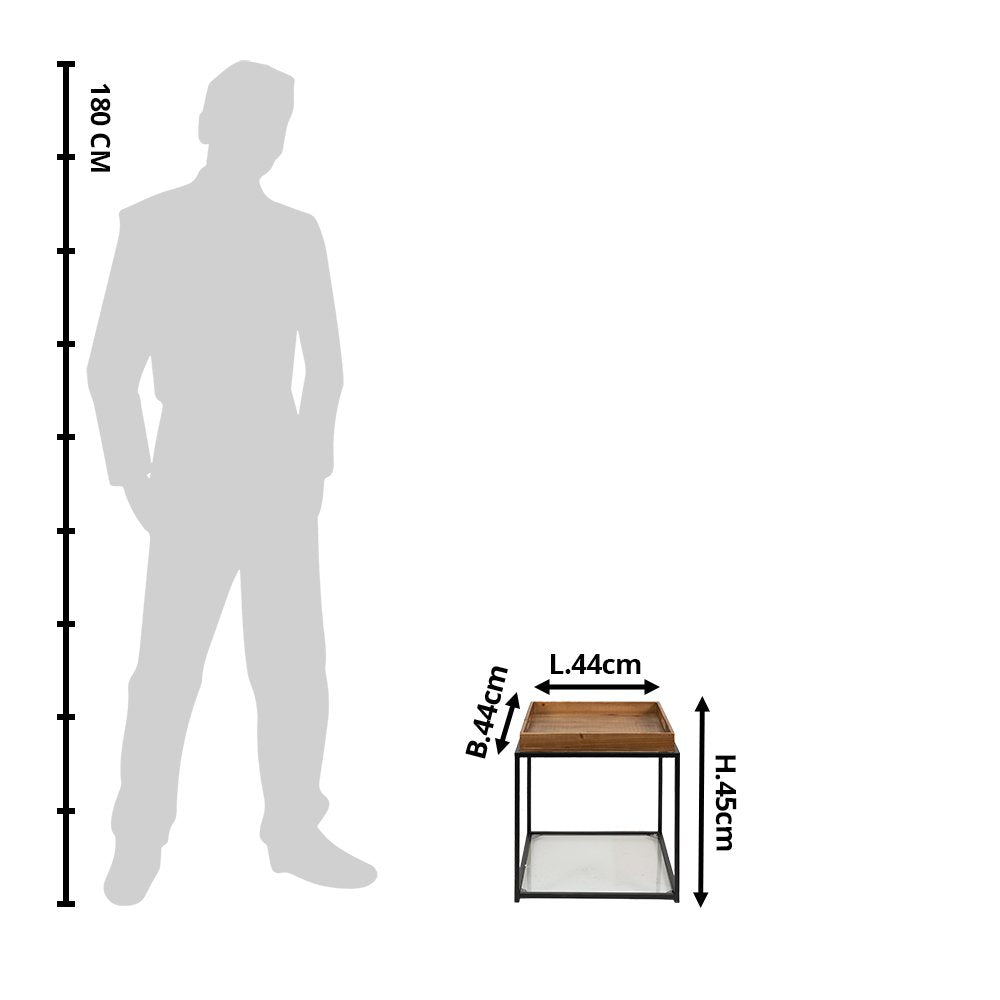 Table d'appoint de couleur Marron et Noir, en Fer et Bois